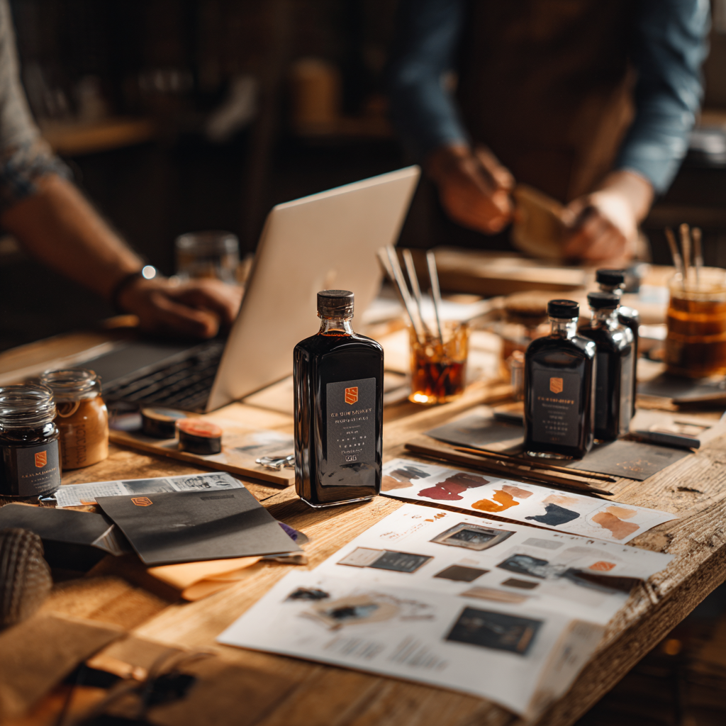 Een sterke smaak verdient een sterke look. We denken mee na over het etiket, de fles en de hele uitstraling zodat jouw merk net zo goed oogt als het smaakt.